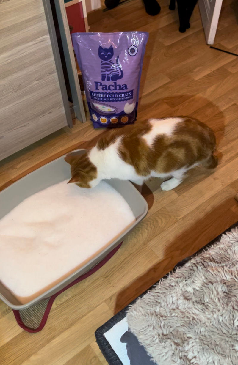 Bon, ça a fini par arriver... la litière Pacha est devenue rouge. J'ai rapidement emmené mon chat de 13 ans chez le vétérinaire, et le diagnostic a montré un taux élevé de globules rouges, ce qui indique une infection et une légère inflammation. Après une piqûre, il va mieux 2 jours après... UN GRAND MERCI PACHA !